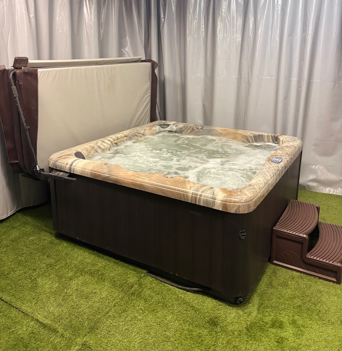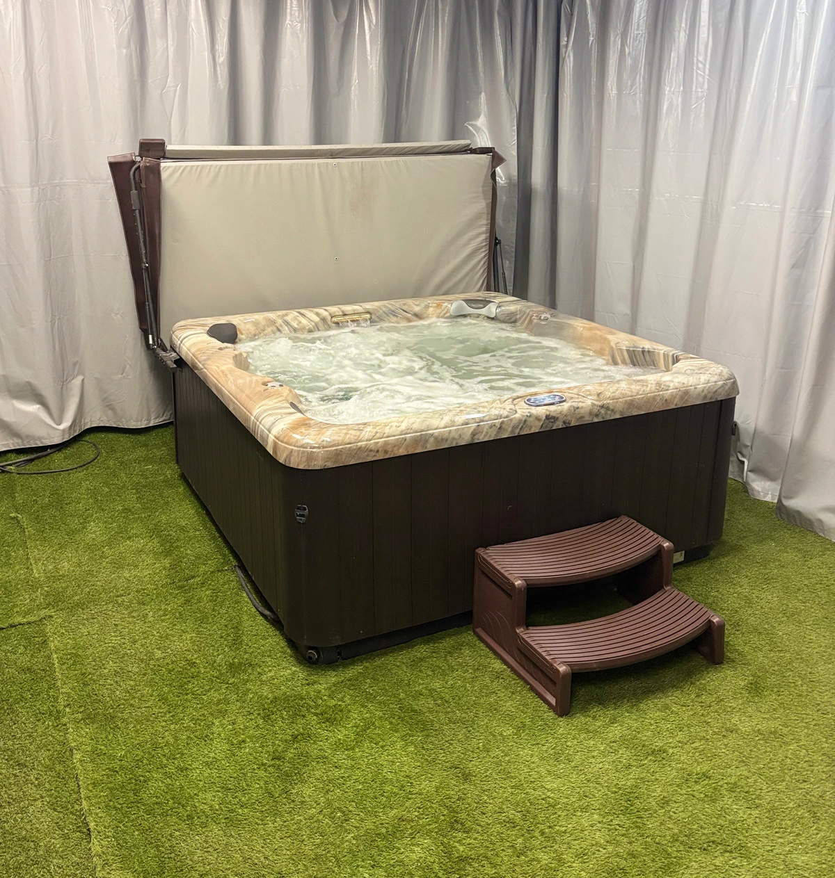 This hot tub is an efficient model that operates on 240V /50A, ensuring reliable heating and performance. It has been thoroughly tested and is in excellent working condition, with all systems functioning as intended. Ideal for regular use, it provides a comfortable experience with solid construction and dependable parts availability.